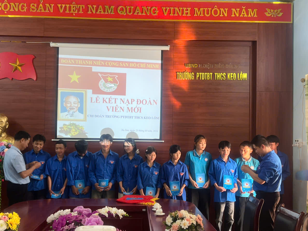 Buổi lễ khép lại trong niềm vui, sự tự hào và quyết tâm của các đoàn viên mới. Tin tưởng rằng với sức trẻ, lòng nhiệt huyết và tinh thần trách nhiệm, các em sẽ tiếp tục phát huy truyền thống tốt đẹp của trường PTDTBT THCS Keo Lôm, xứng đáng là lực lượng nòng cốt trong các phong trào thi đua của nhà trường khi bước vào kỉ nguyên mới – kỉ nguyên vươn mình của dân tộc.