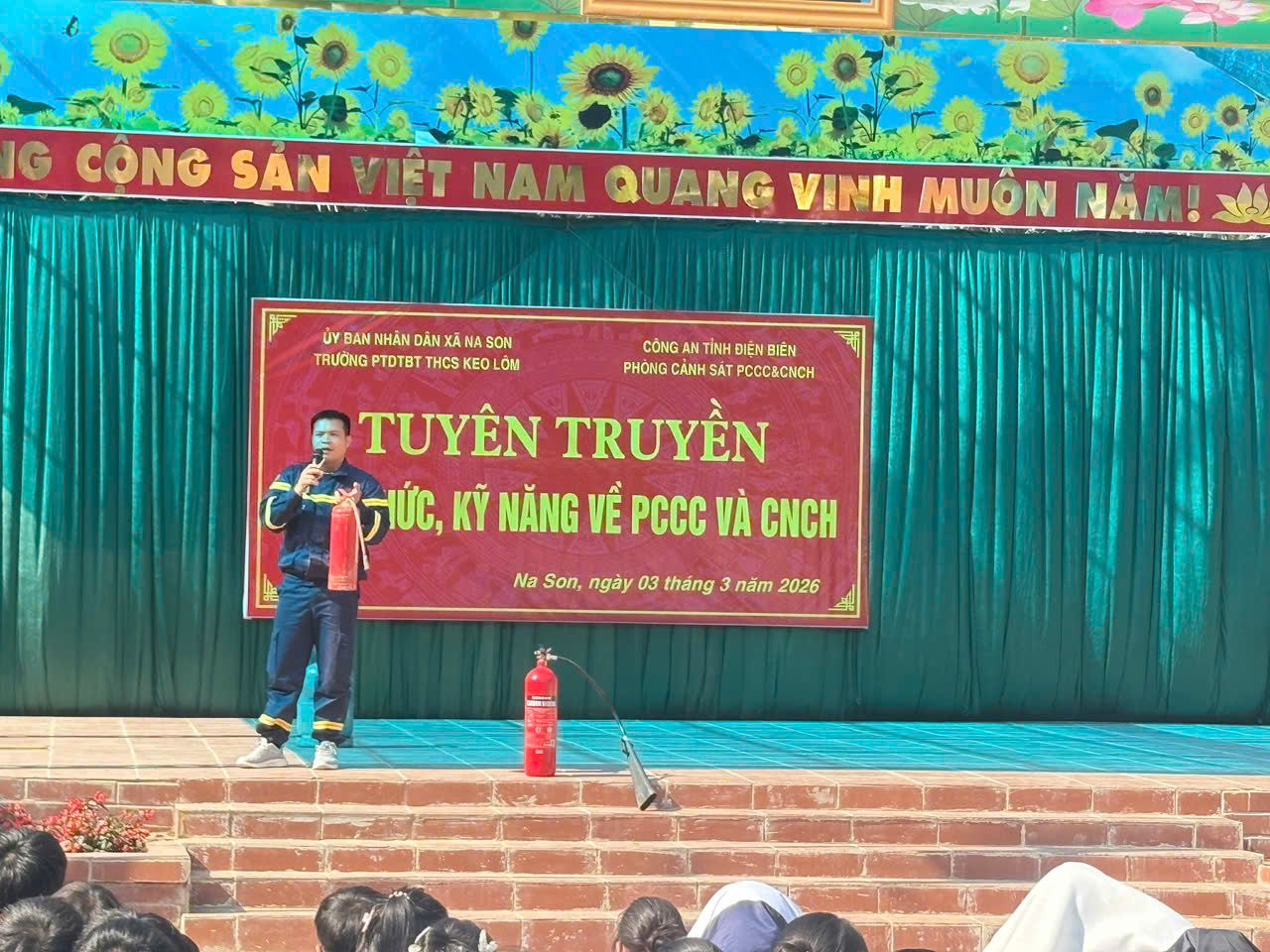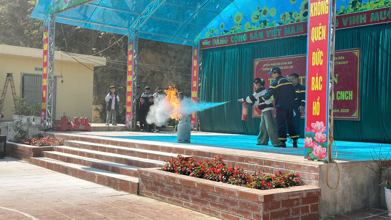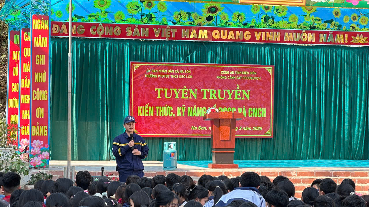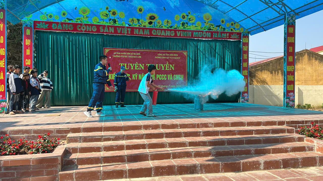Phòng Cảnh sát Phòng cháy, chữa cháy và Cứu nạn, cứu hộ thuộc Công an tỉnh Điện Biên đã tuyên truyền kiến thức, kỹ năng về phòng cháy, chữa cháy và cứu nạn, cứu hộ cho cán bộ, giáo viên, nhân viên và học sinh trường PTDTBT THCS Keo Lôm