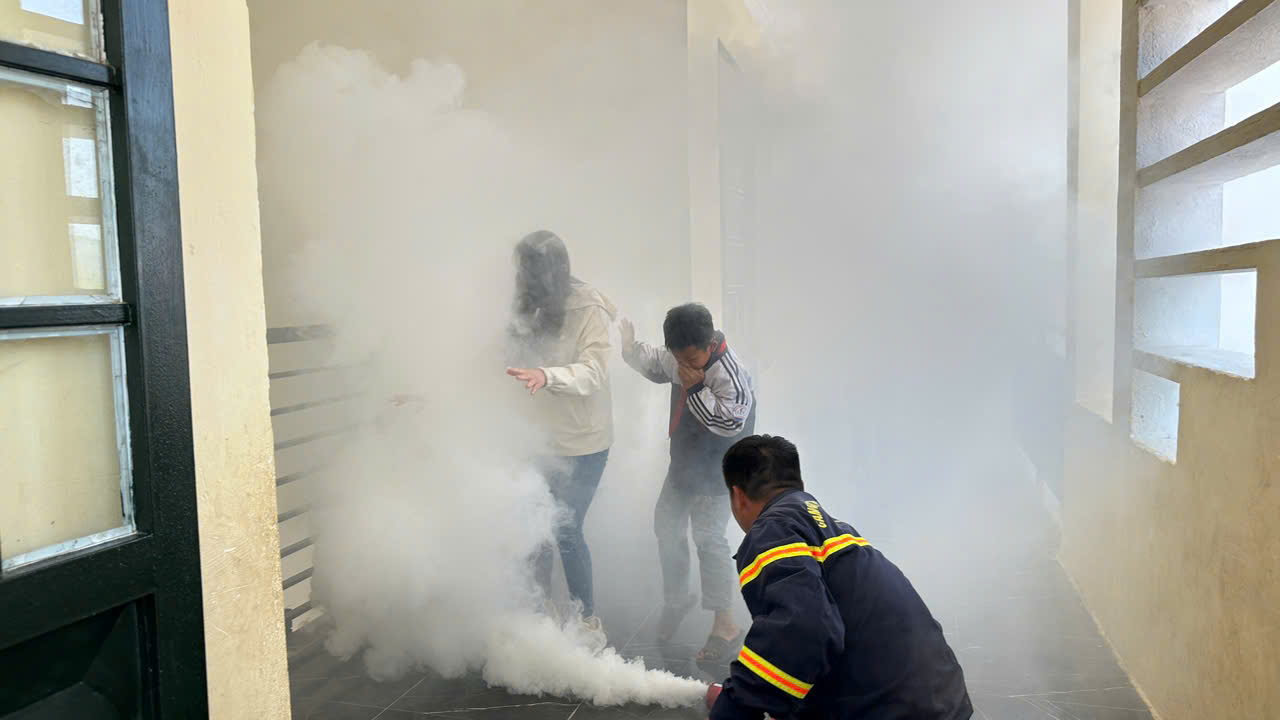 tinh thần nghiêm túc, tập trung nhưng cũng rất gần gũi, cởi mở. Các thành viên tham gia đều thể hiện sự nhiệt tình, chủ động lắng nghe và tích cực tương tác. Đặc biệt, với đặc thù là một trường phổ thông dân tộc bán trú ở vùng cao, nơi điều kiện cơ sở vật chất còn nhiều khó khăn, việc được tiếp cận trực tiếp với lực lượng chuyên môn, được trang bị kiến thức, kỹ năng bài bản về phòng cháy, chữa cháy và cứu nạn, cứu hộ càng trở nên ý nghĩa hơn bao giờ hết.